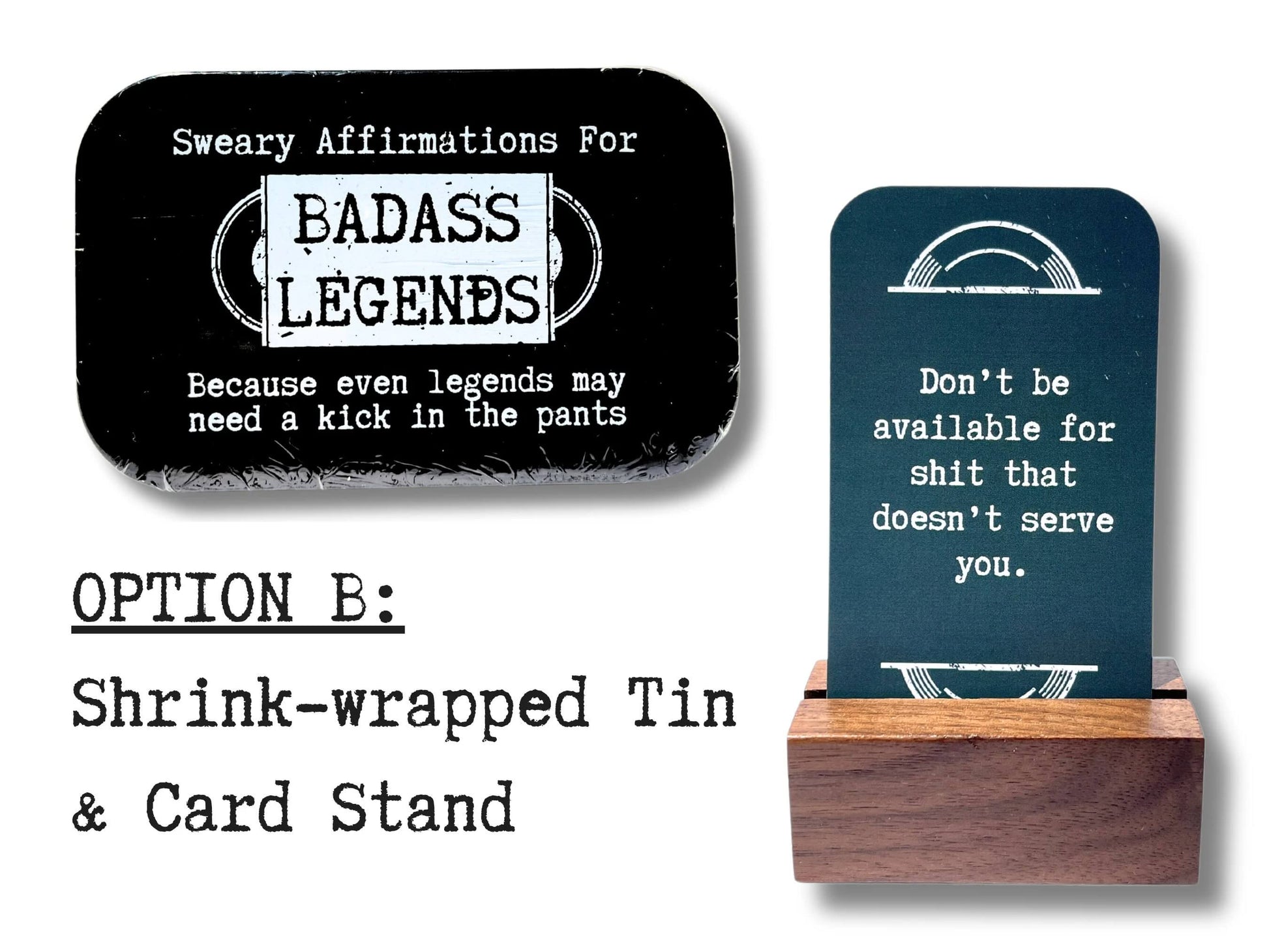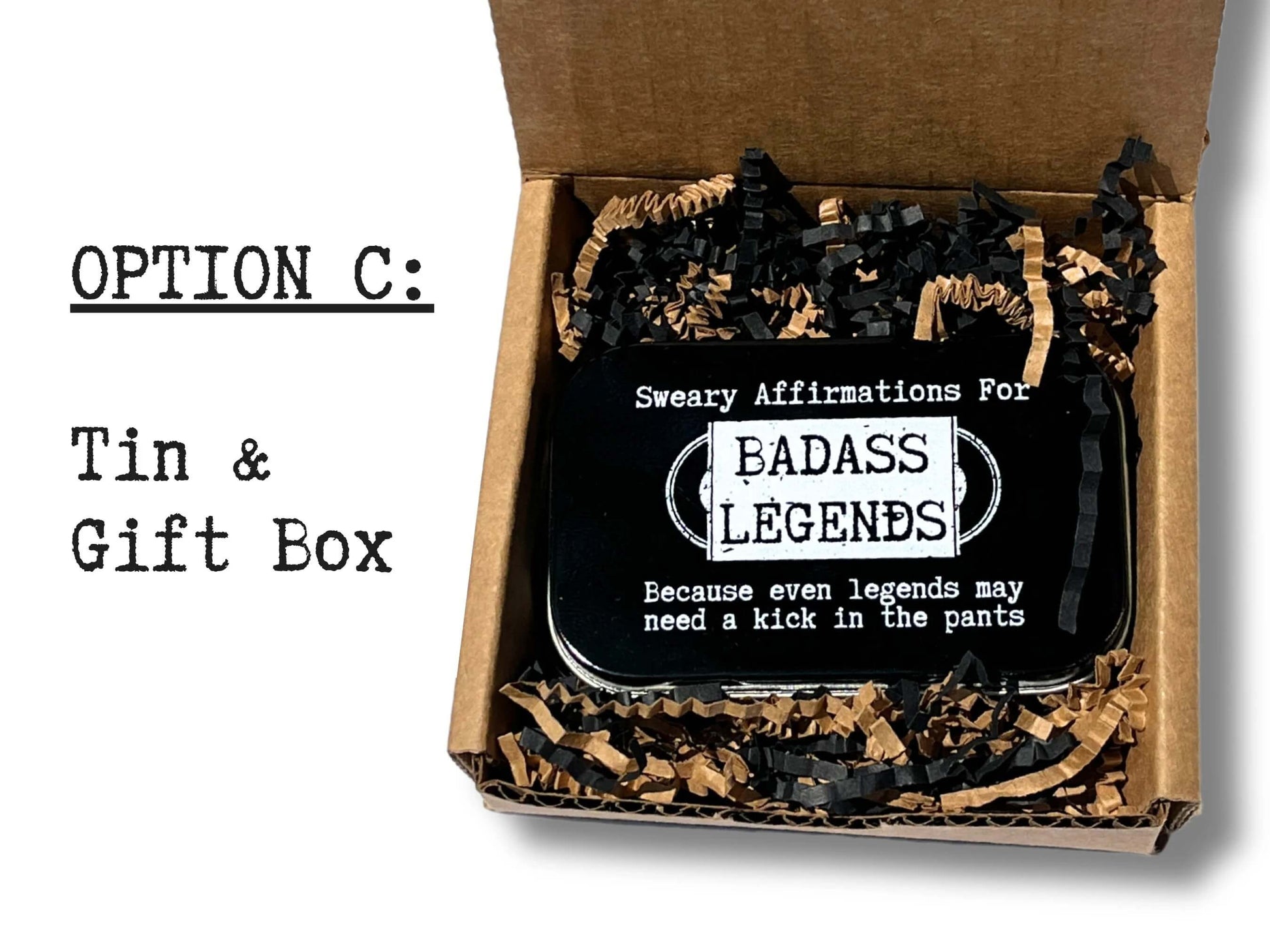 40 Mini Sweary Affirmation Cards for Badass Legends | Black Tin Included for Storage | Business Card Size